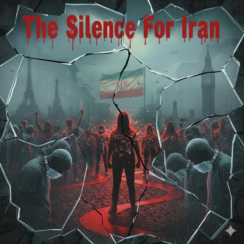 “The Silence For Iran” is a visceral, politically charged anthem that critiques the global community’s perceived apathy toward the struggle for freedom in Iran. The lyrics draw a sharp, haunting contrast between the violent reality on the ground—where “streets flow crimson red”—and the eerie stillness of Western observers.